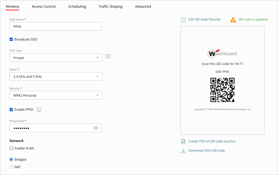 WatchGuard Cloud で Access Point Site の PPSK を構成するには、以下の手順を実行します。