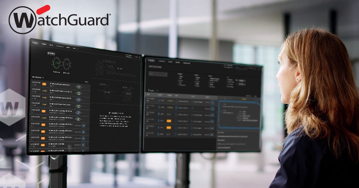 WatchGuard hardware and software products showing on a laptop, desktop and mobile phone