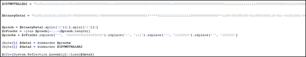 It’s apparent this is a dropper, which I called ‘kimkarden’ because of the function at the top of the script that does bit manipulation. My analysis for this dropper began right after the binary variables, at the $pinch variable declaration.
